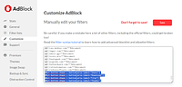 AdBlock — best ad blocker > Customize > Manually edit your filters > Edit > (Paste) > Save
