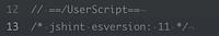 Added /*. jshint esversion: •11.*/ under line 12 to get rid of the Safari UserScripts error on line 21 'Optional chaining' is only available in ES11 (use 'esversion: 11'). I suspect that is an extension specific bug with jshint but maybe you can add that in for better compat. Likely keeping just GM_info.script.version on that line would work too but I see your comment on external editors there.